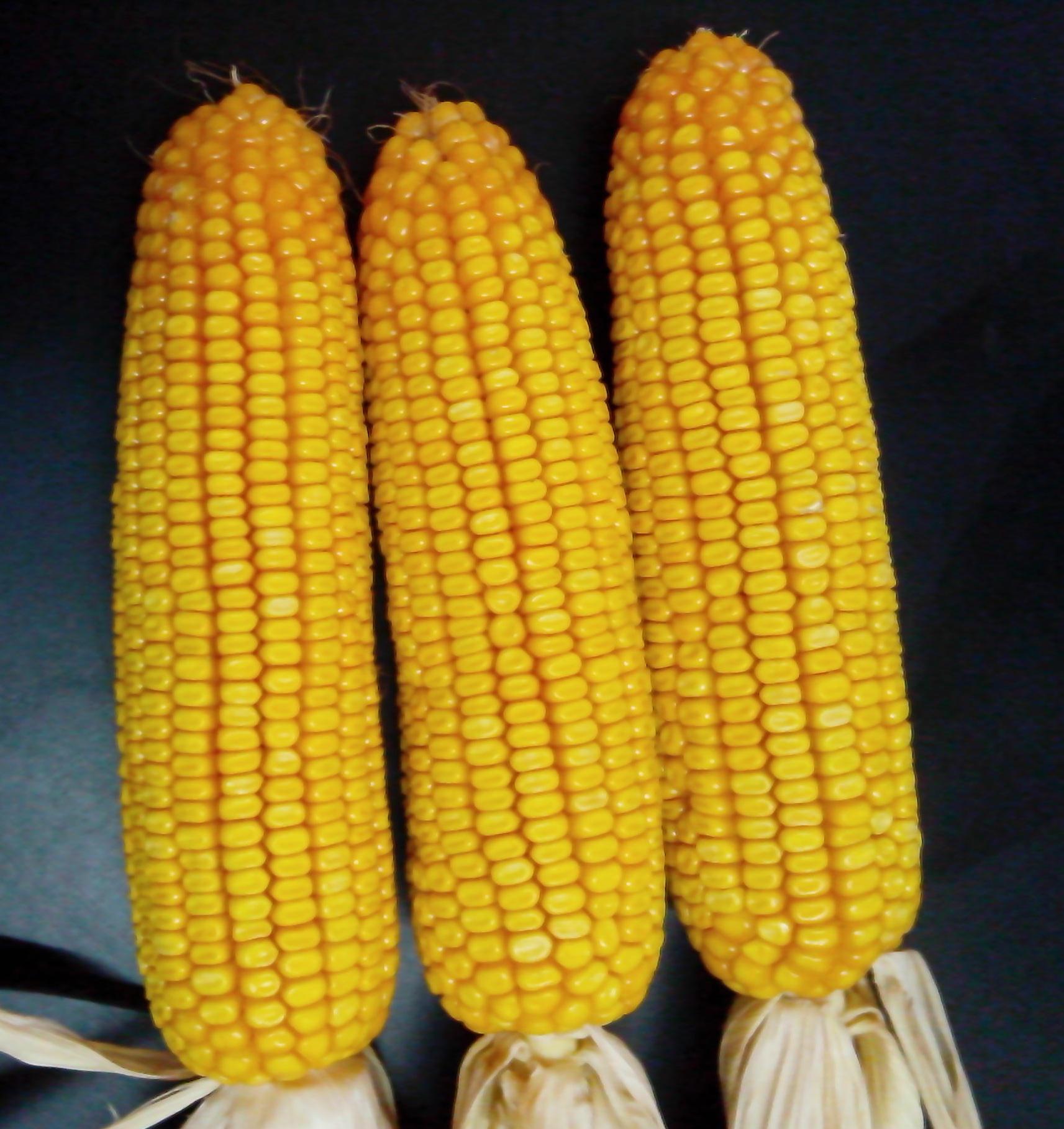 特征特性:該品種為中早熟玉米雜交種,夏播全生育期96天左右,株高254cm,穗位92cm左右,穗長20.5cm左右,穗粗5.2cm左右,穗軸紅色,穗行數16-18行,行粒數38粒左右,籽粒黃色、馬齒型,出籽率90%,千粒重345g左右。高抗紋枯病,中抗彎孢菌葉斑病,抗銹病、小斑病、莖腐病。